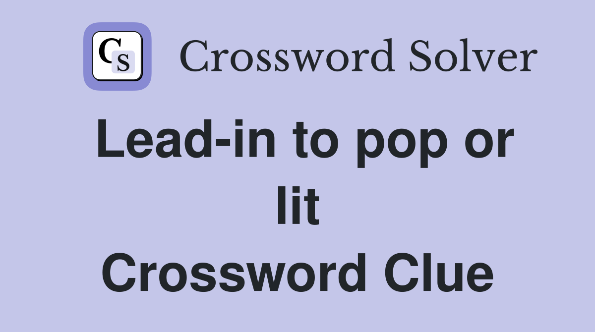 Lead in to pop or lit Crossword Clue Answers Crossword Solver
