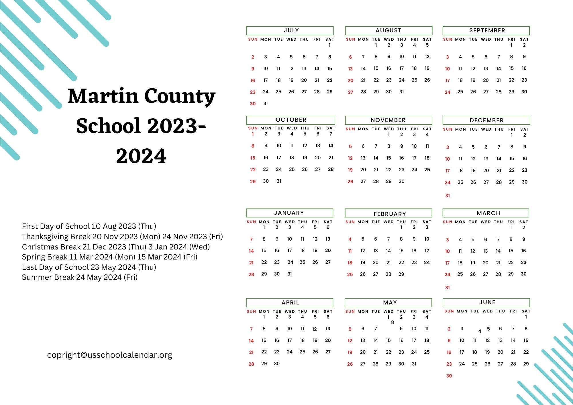 Martin County School District Calendar 2023 2024 (Holiday Breaks)
