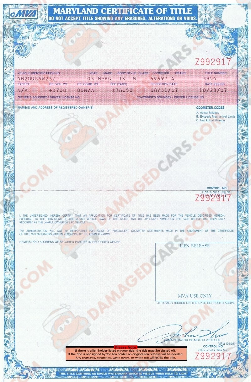 Here are some of the images for Maryland Certificate Of Title that we found in our website database.