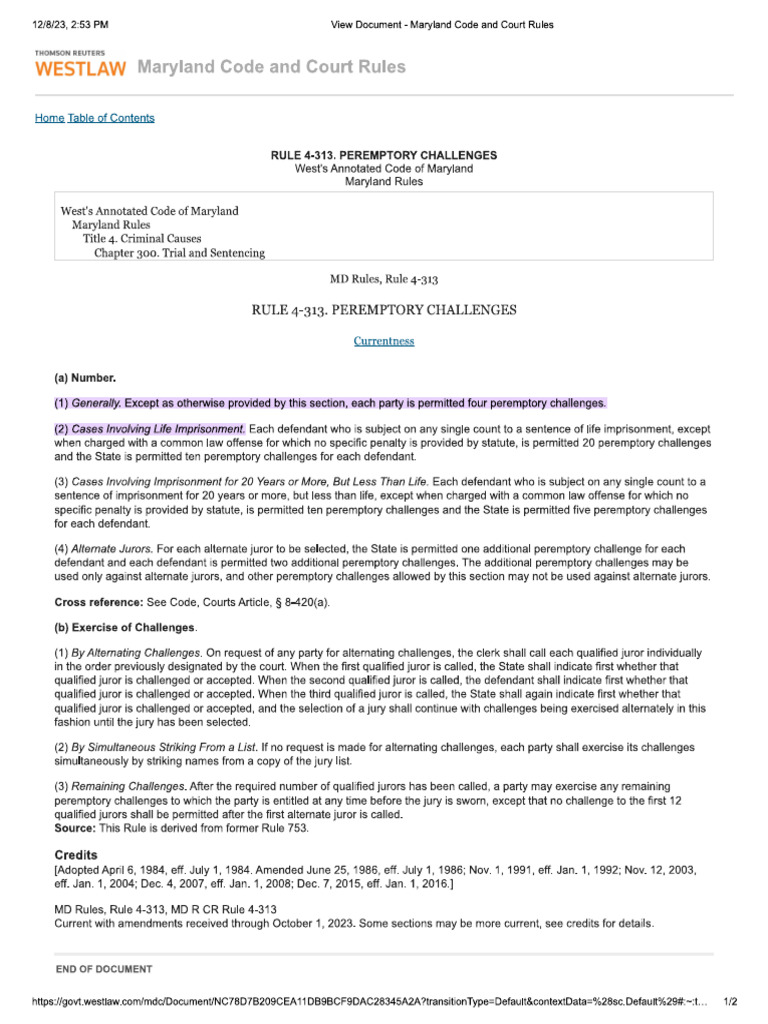 Maryland Premptory Challenges PDF
