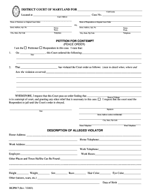 Fillable Online courts state md PETITION FOR CONTEMPT Maryland state