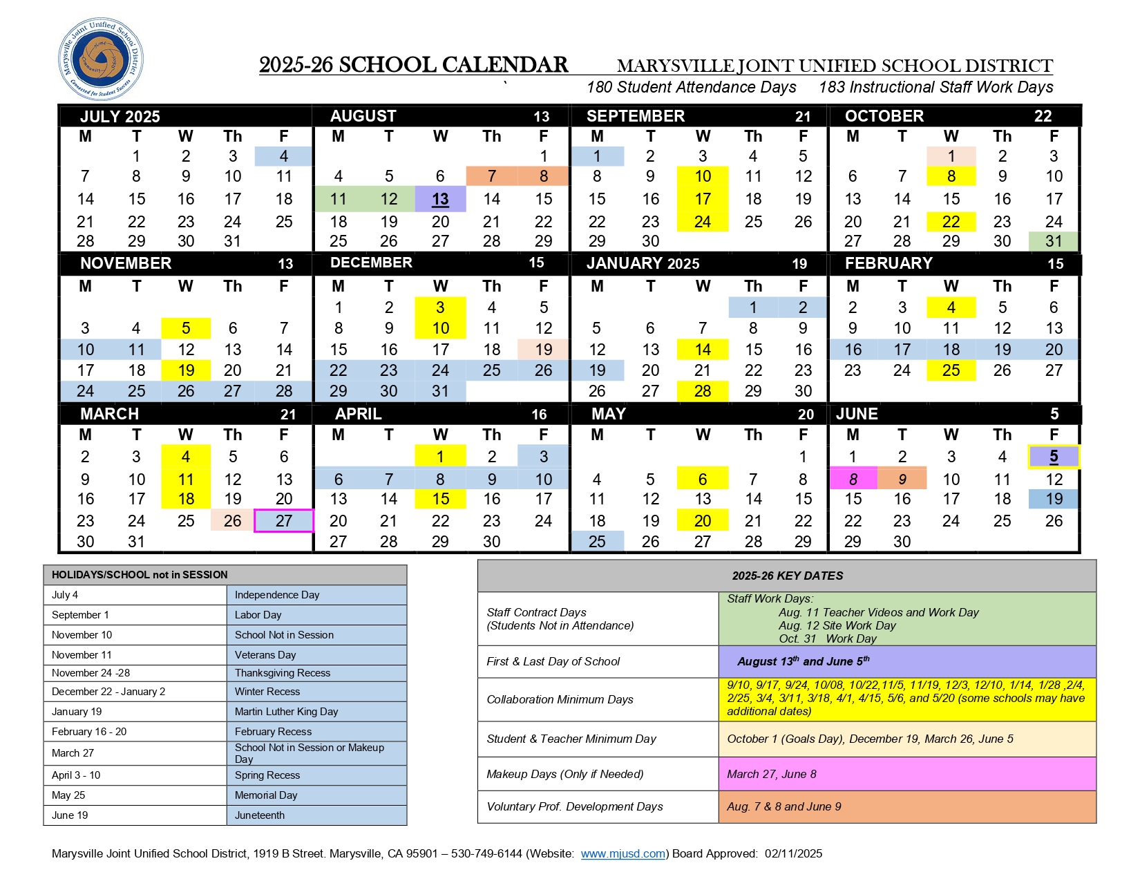 Marysville Joint Unified School District Calendar PDF Revised EduCounty