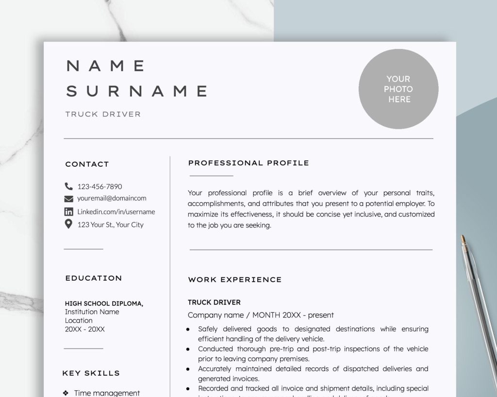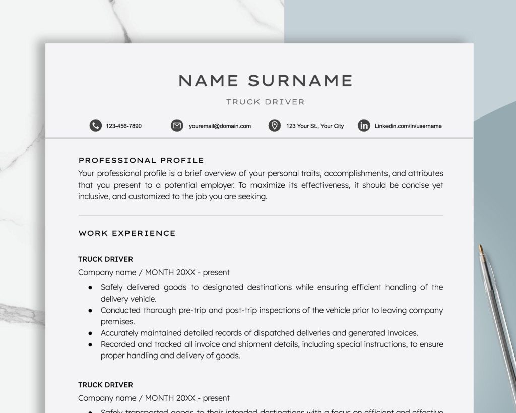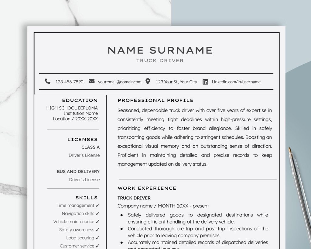 Resume Template for Truck Driver Made in Google Docs CV Etsy