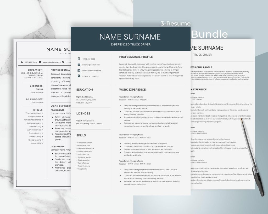 Truck Driver Resume Template Google Docs And Word (Bundle) Masculine