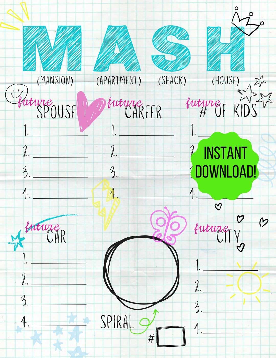Mash Game / Slumber Party Game / Mash Game Template Etsy