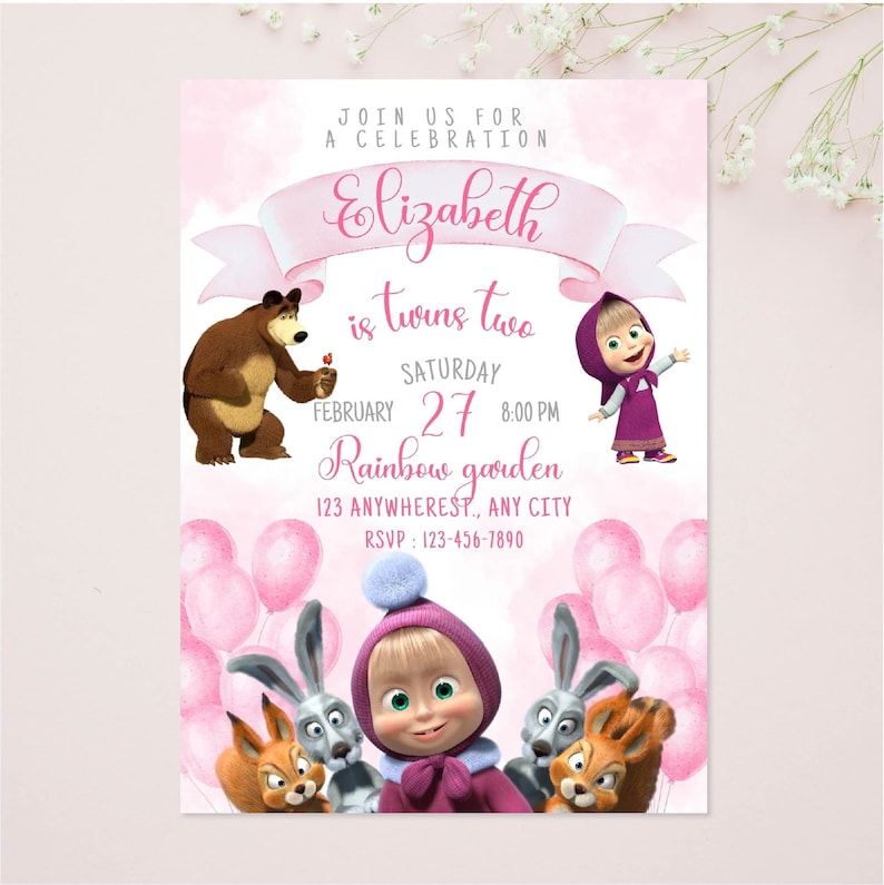 Editable Masha and the Bear Birthday Invitation Template Printable