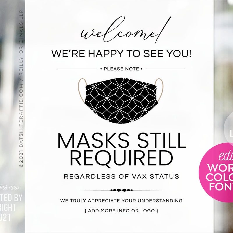Face Masks Optional Sign Printable Instant Digital Download Face Masks