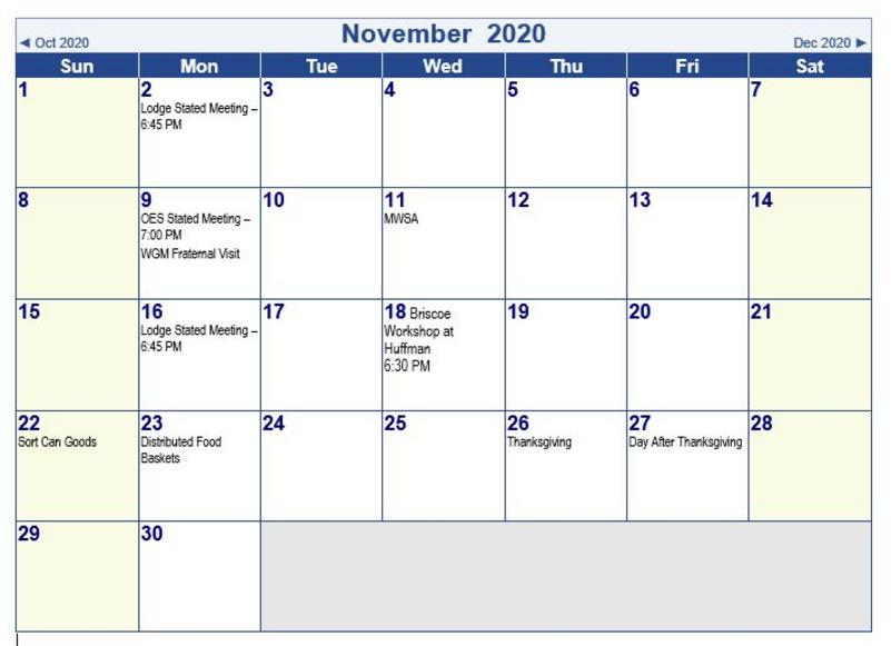 2020 6020 Free Printable Masonic Calendar from The Masonic Shop