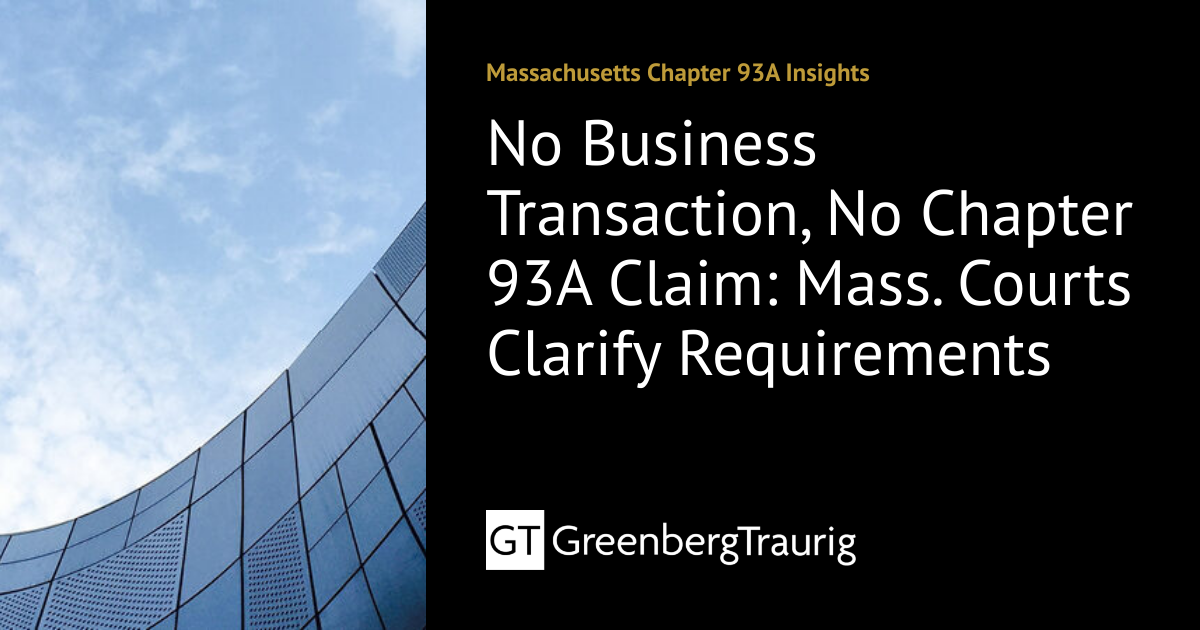 No Business Transaction No Chapter 93A Claim: Mass Courts Clarify