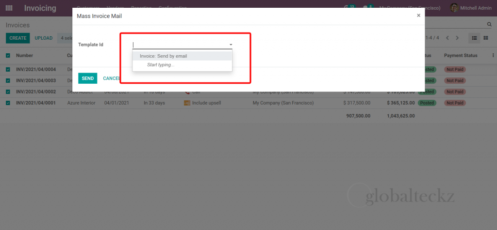 Odoo Mass invoice emailing