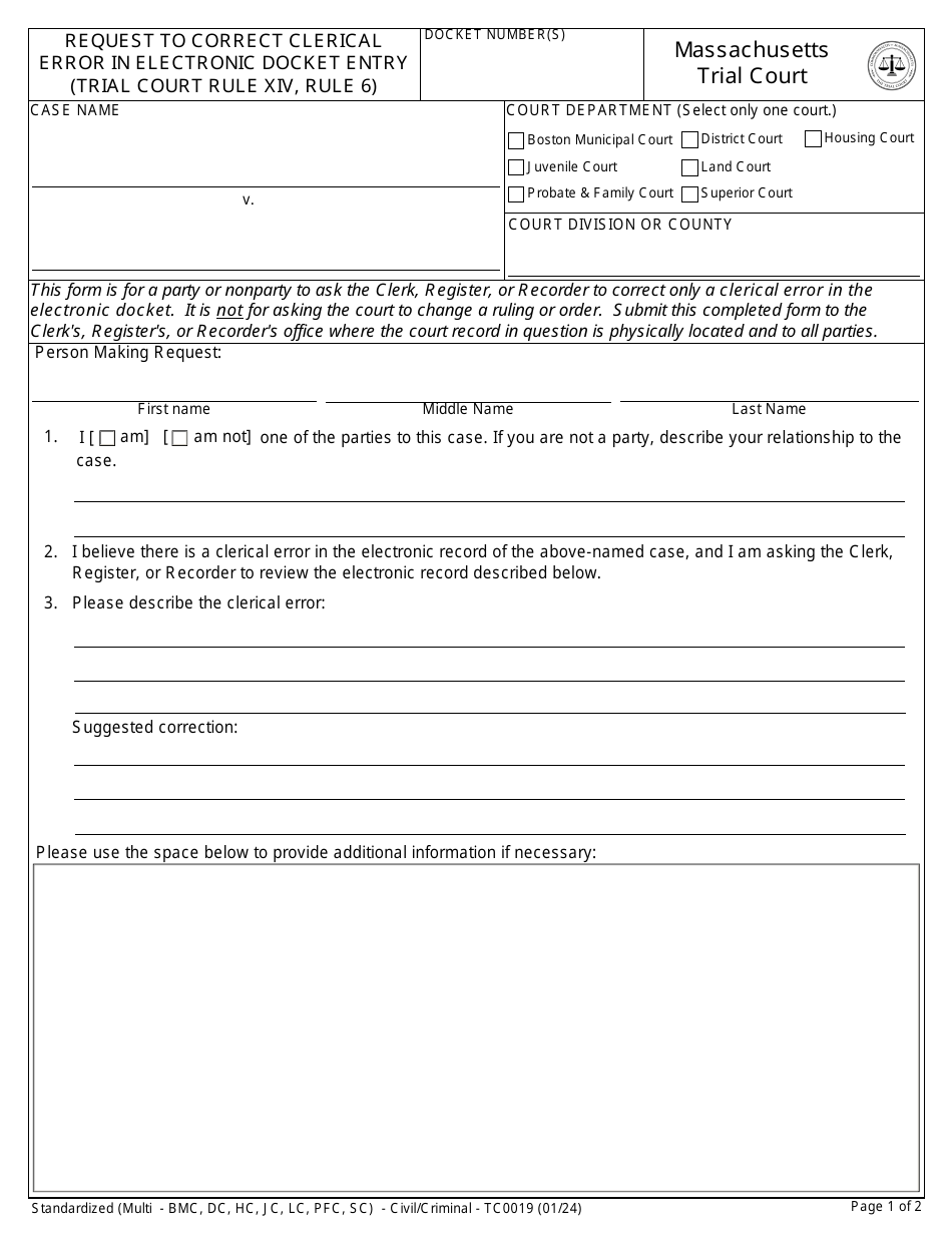 Massachusetts Request for Correction of Clerical Error in Electronic