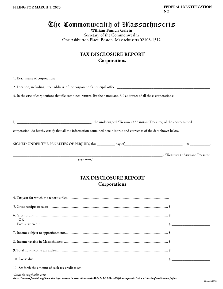 2023 Massachusetts Tax Disclosure Report Corporations Fill Out