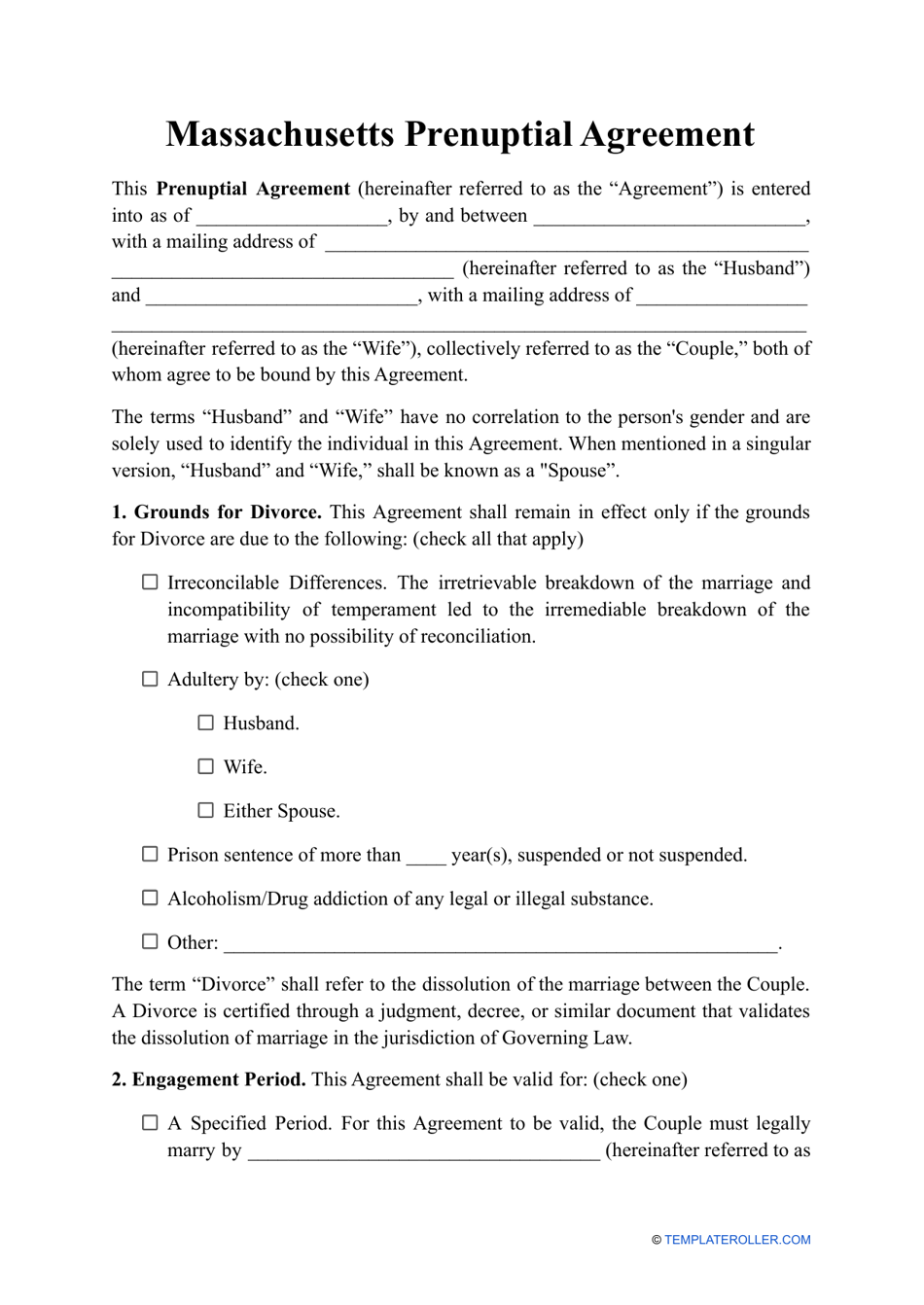 Massachusetts Prenuptial Agreement Template