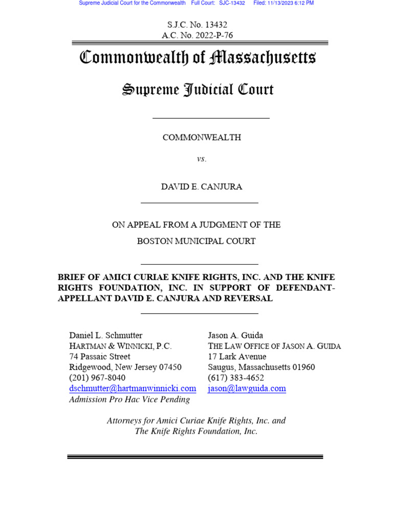 Knife Rights Files Amicus Brief in Massachusetts Supreme Judicial Court