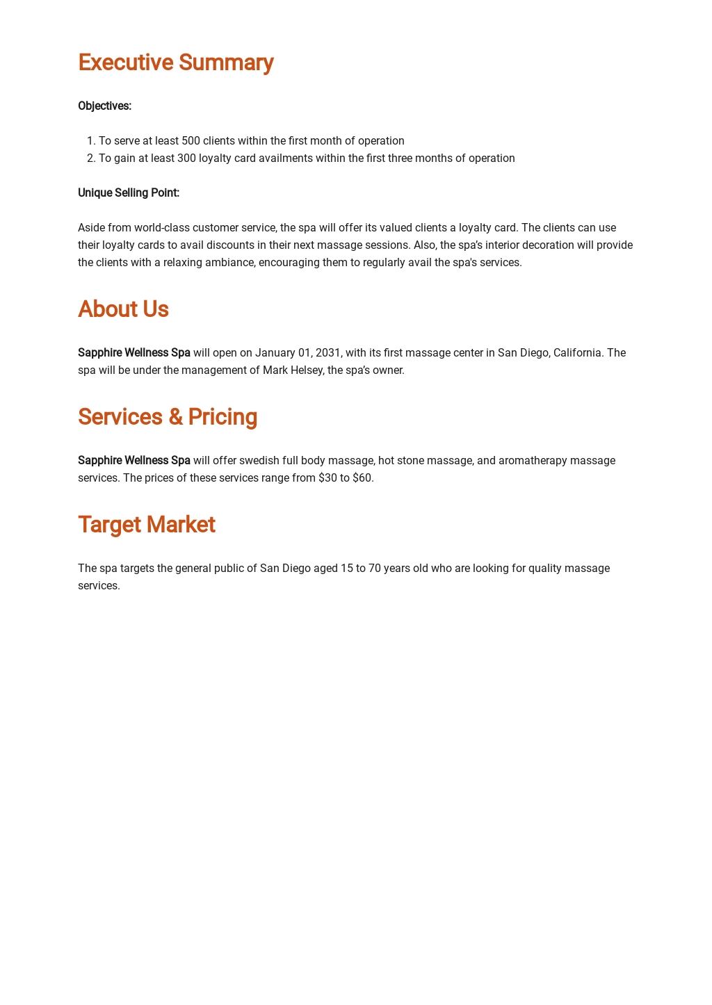 Spa Business Plan Template
