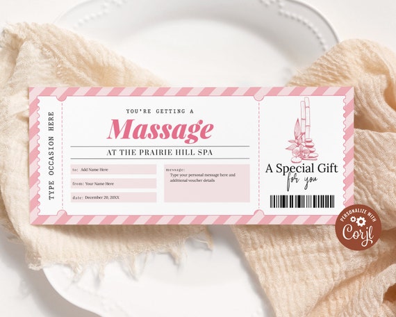Custom Massage Gift Ticket • Editable PDF Voucher Etsy