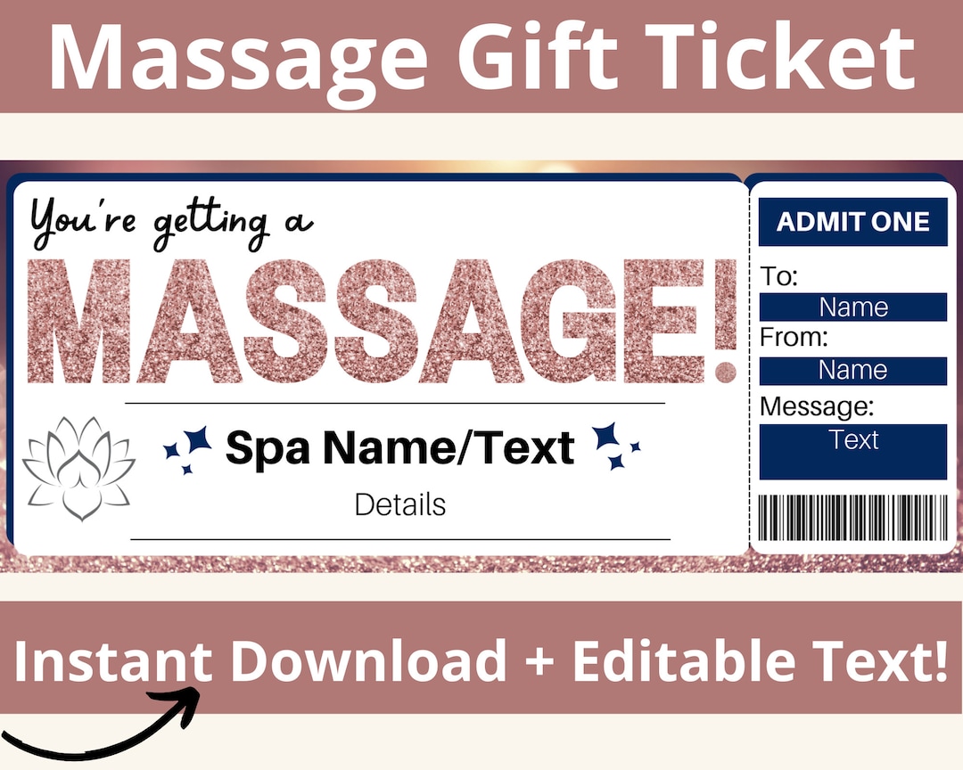 Printable MASSAGE Surprise Reveal Ticket Gift Voucher Editable Event