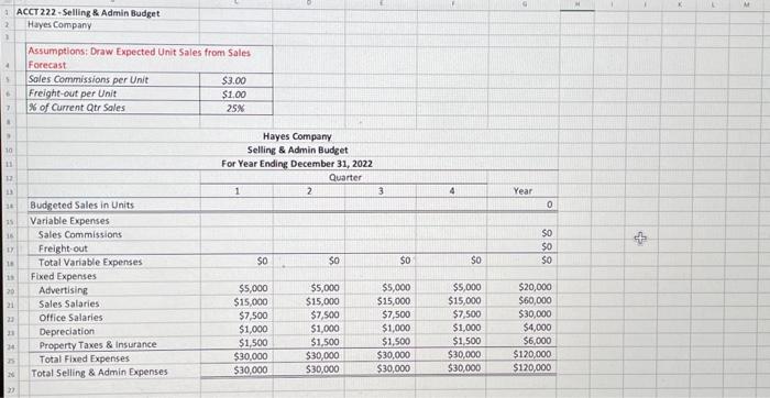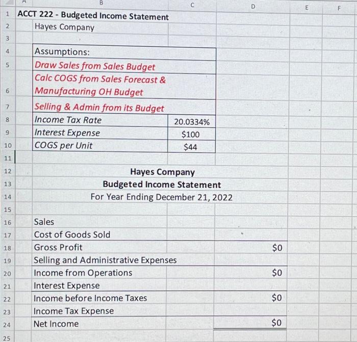 Solved ACCT 222 Master Budget Template Hayes Company Any Chegg com