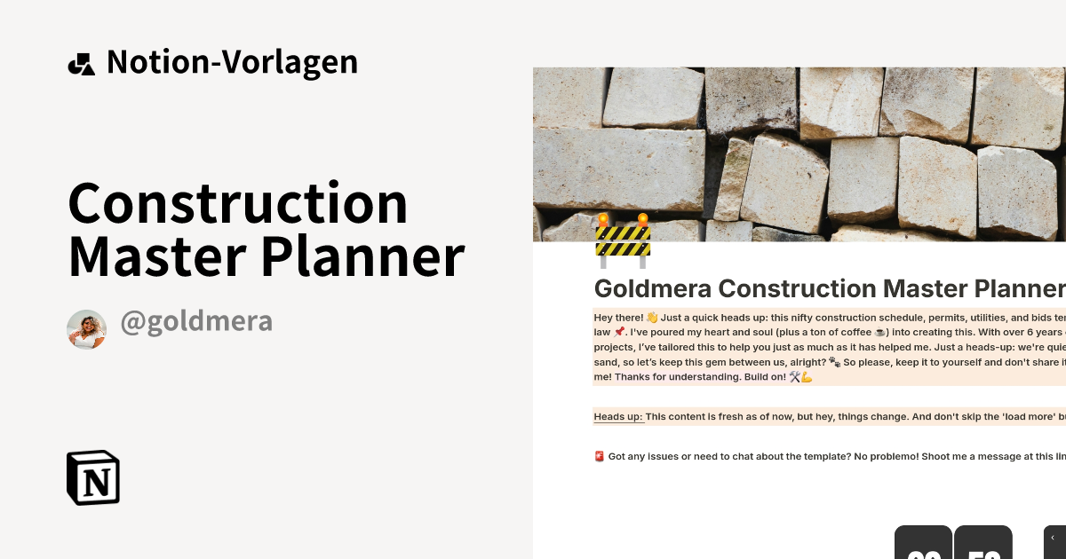 Construction Master Planner Vorlage Notion Marketplace