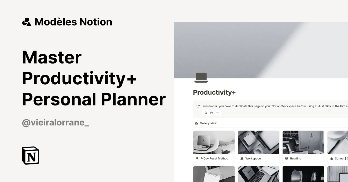 Modèle Master Productivity Personal Planner Marketplace Notion