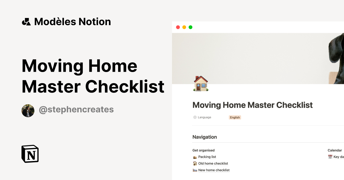 Modèle Moving Home Master Checklist Marketplace Notion