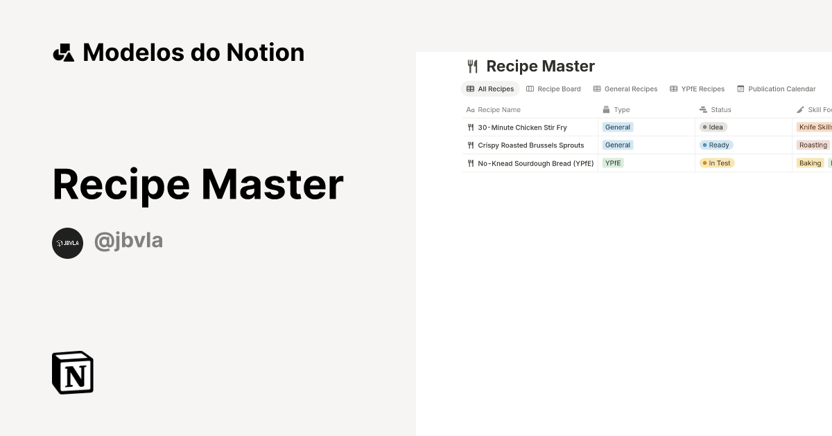 Recipe Master Modelo por JBVLA Marketplace do Notion