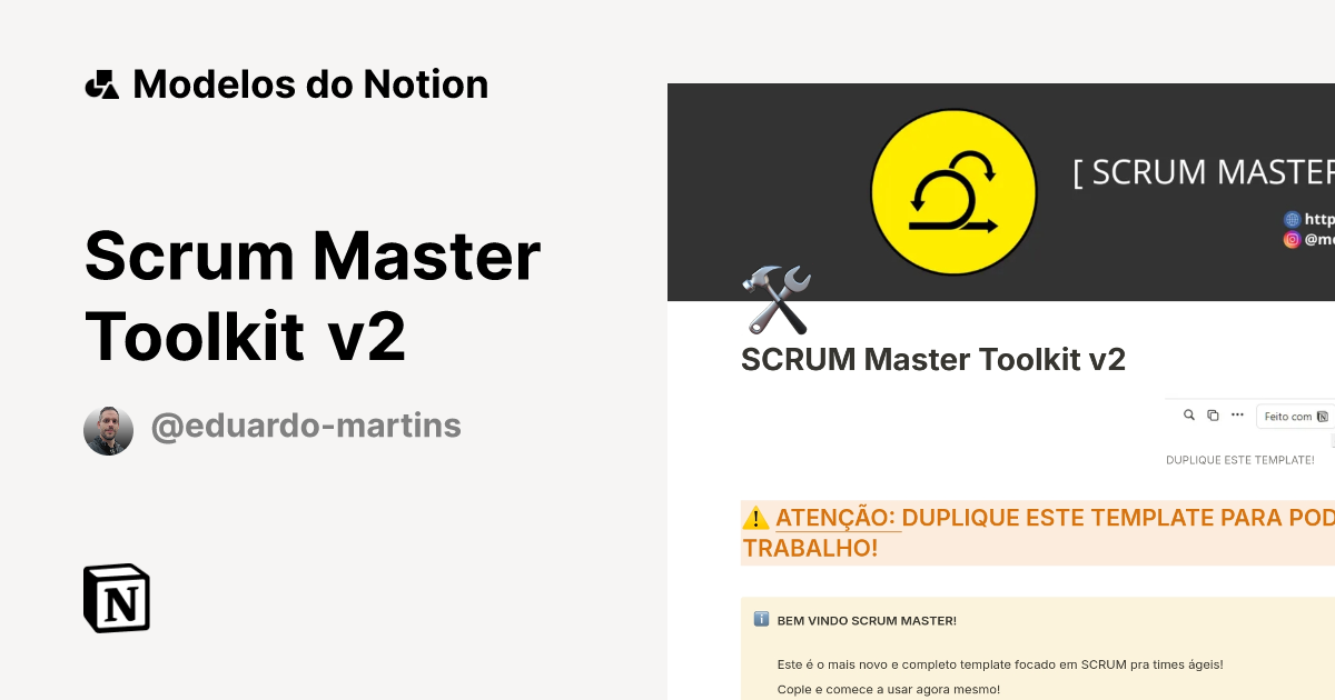 Modelo Scrum Master Toolkit v2 Marketplace do Notion