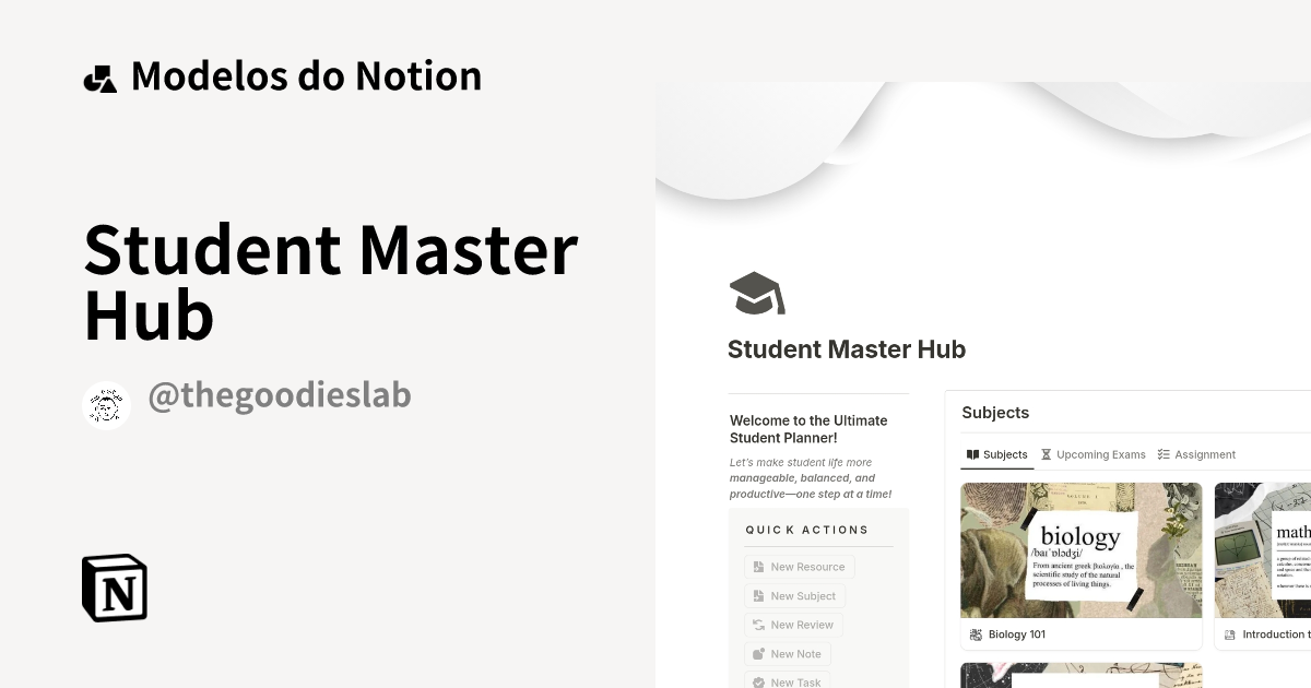 Student Master Hub Modelo por The Goodies Lab Marketplace do Notion