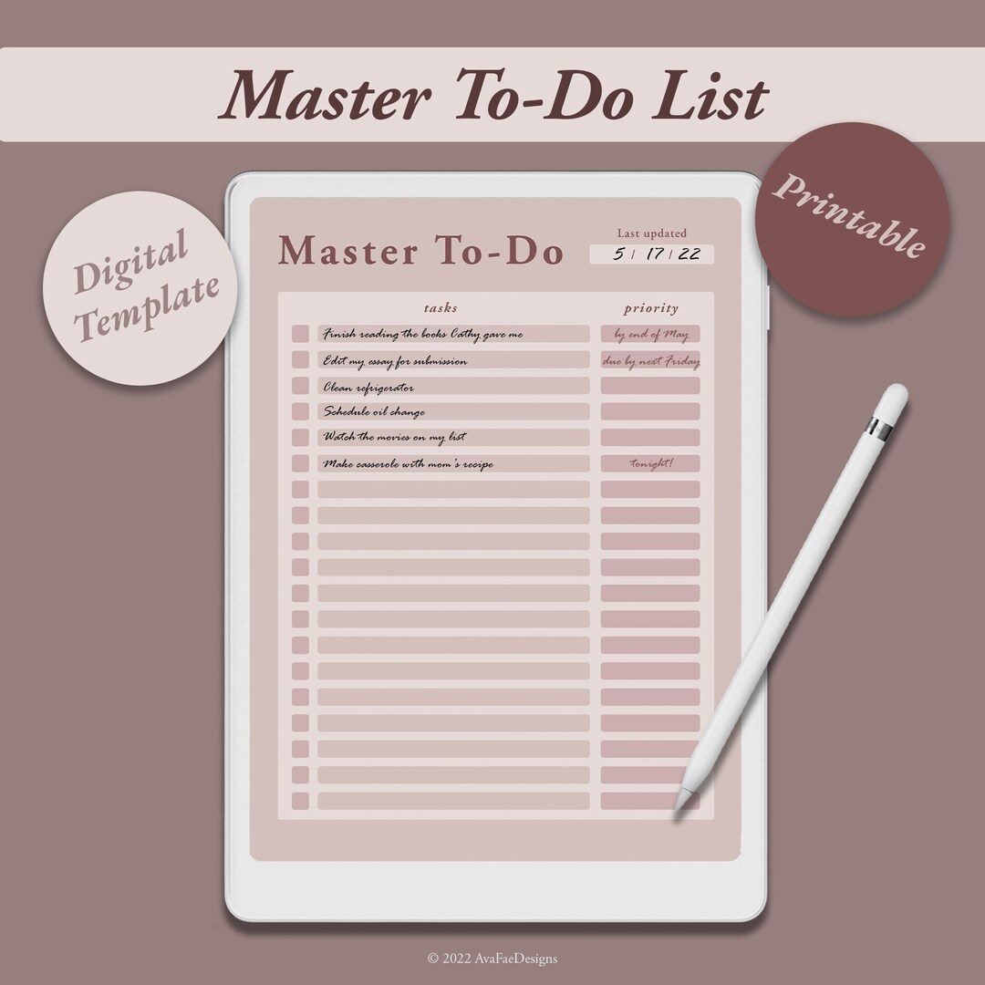 Master To do List Digital Template / Printable PDF / Dusty Rose Palette