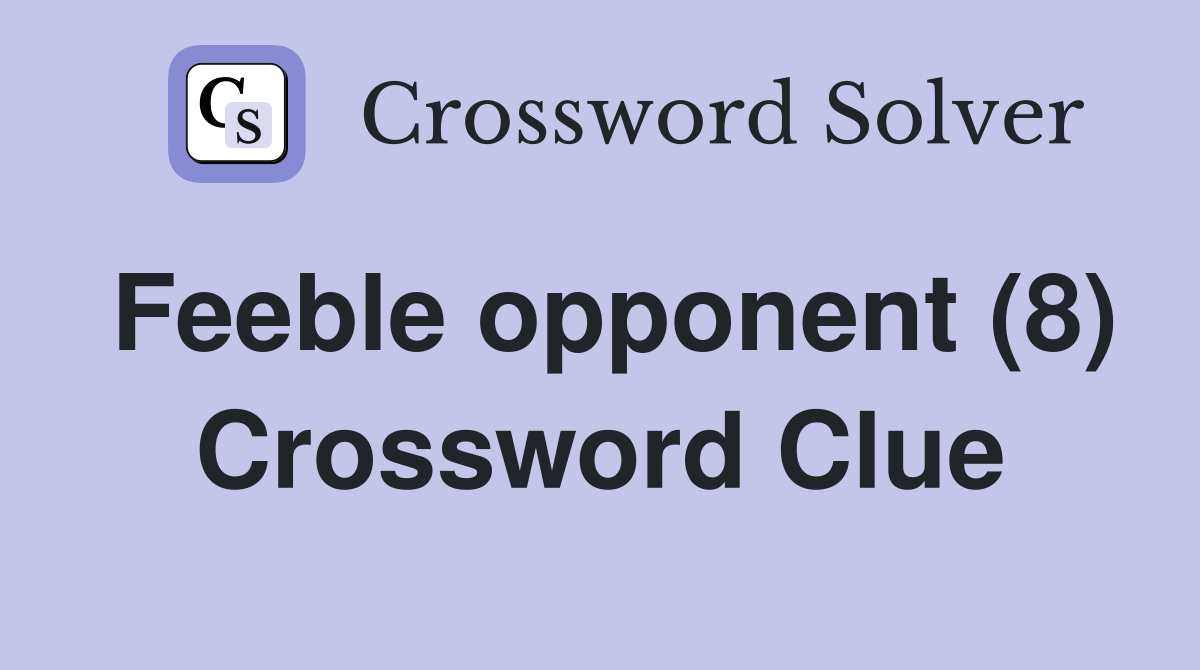 Feeble opponent (8) Crossword Clue Answers Crossword Solver