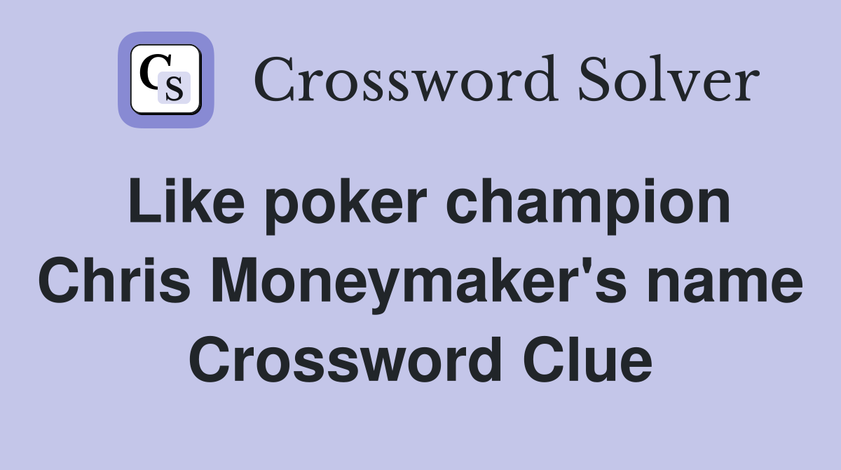 Like poker champion Chris Moneymaker #39 s name Crossword Clue Answers