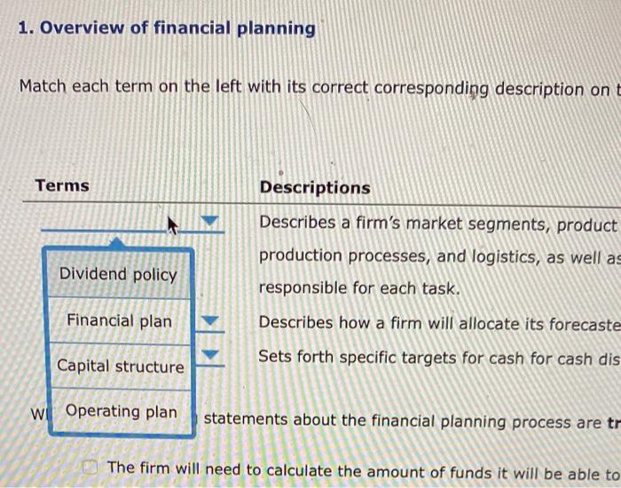 match each term to its correct description prompts answers (1