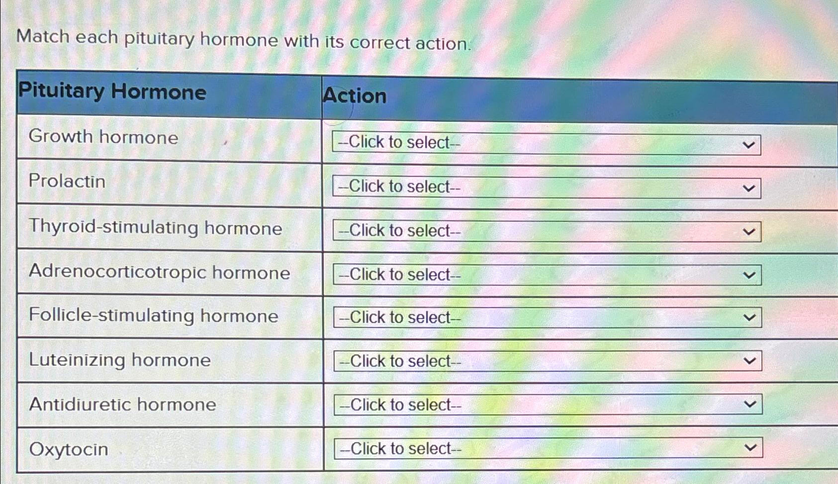 Solved Match each pituitary hormone with its correct Chegg com