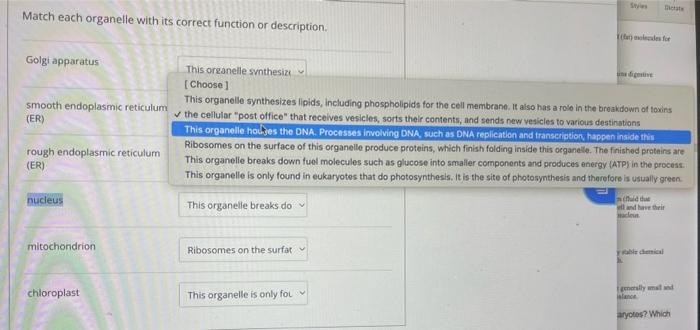 Solved Match each organelle with its correct function or Chegg com