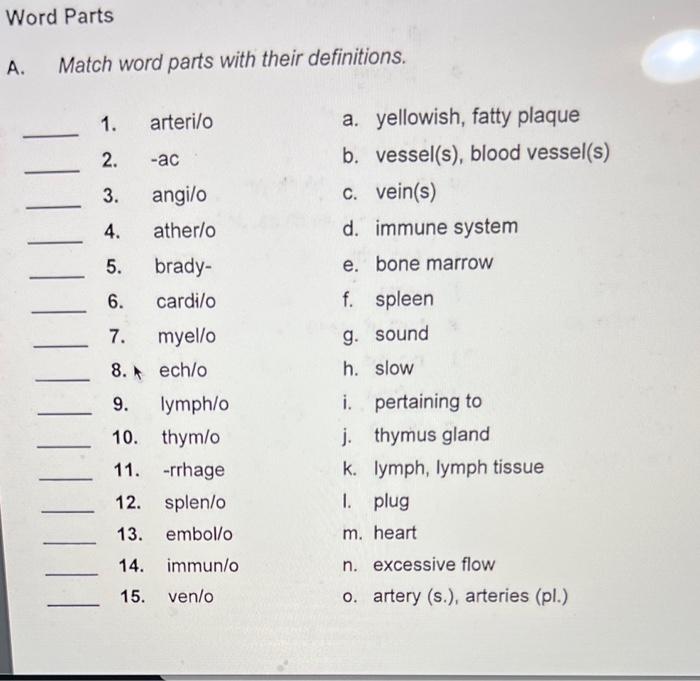 Solved A Match word parts with their definitions Match Chegg com