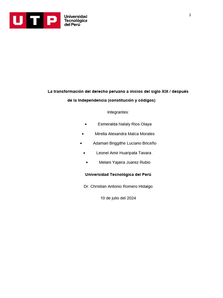 La Transformación Del Derecho Peruano A Inicios Del Siglo XIX PDF