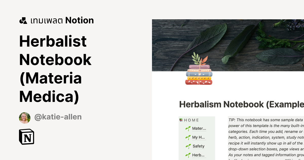 Herbalist Notebook (Materia Medica) Template by Katie Allen Notion