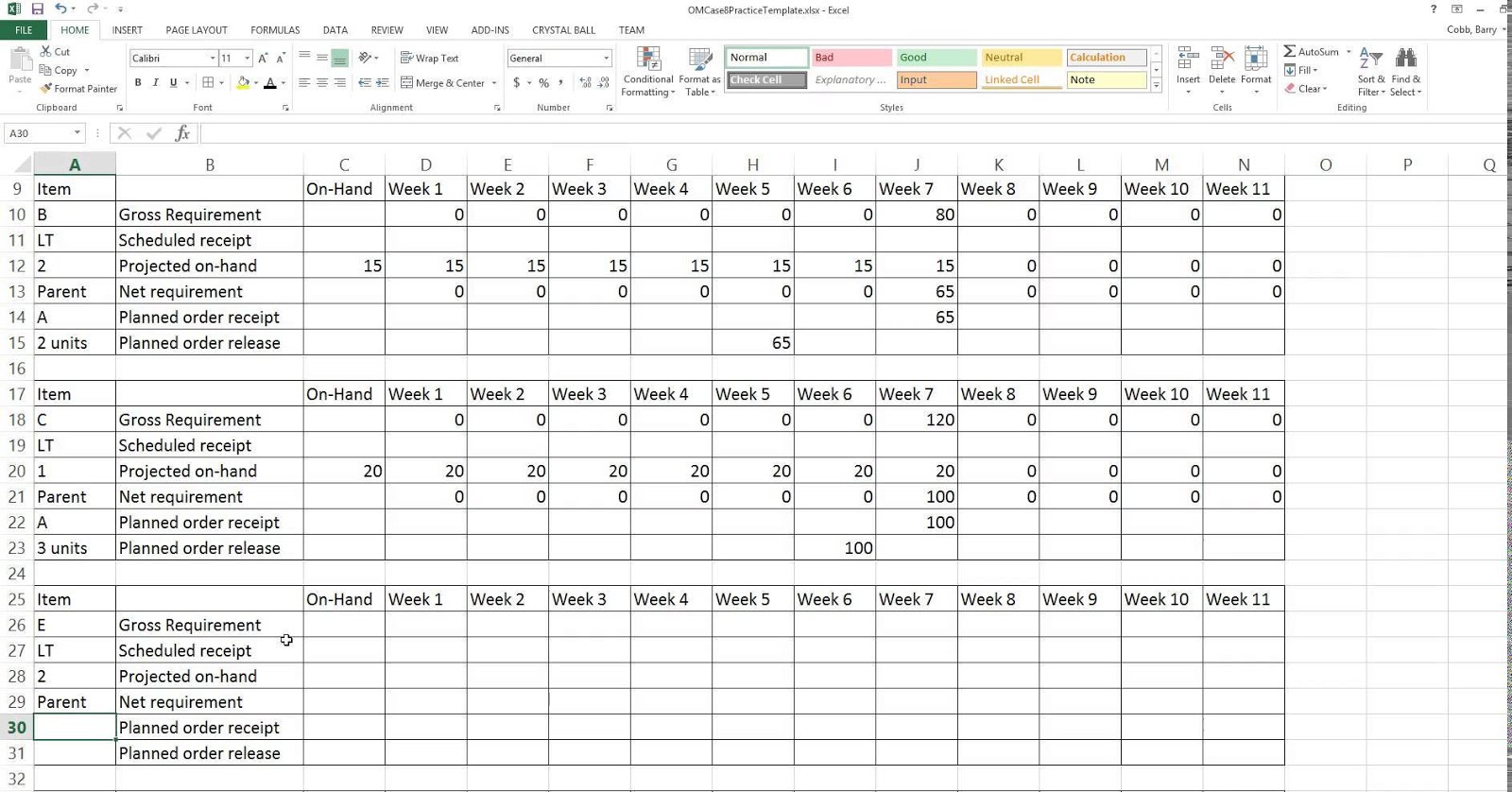 Develop material requirement planning mrp in excel by Hafiz abubaker