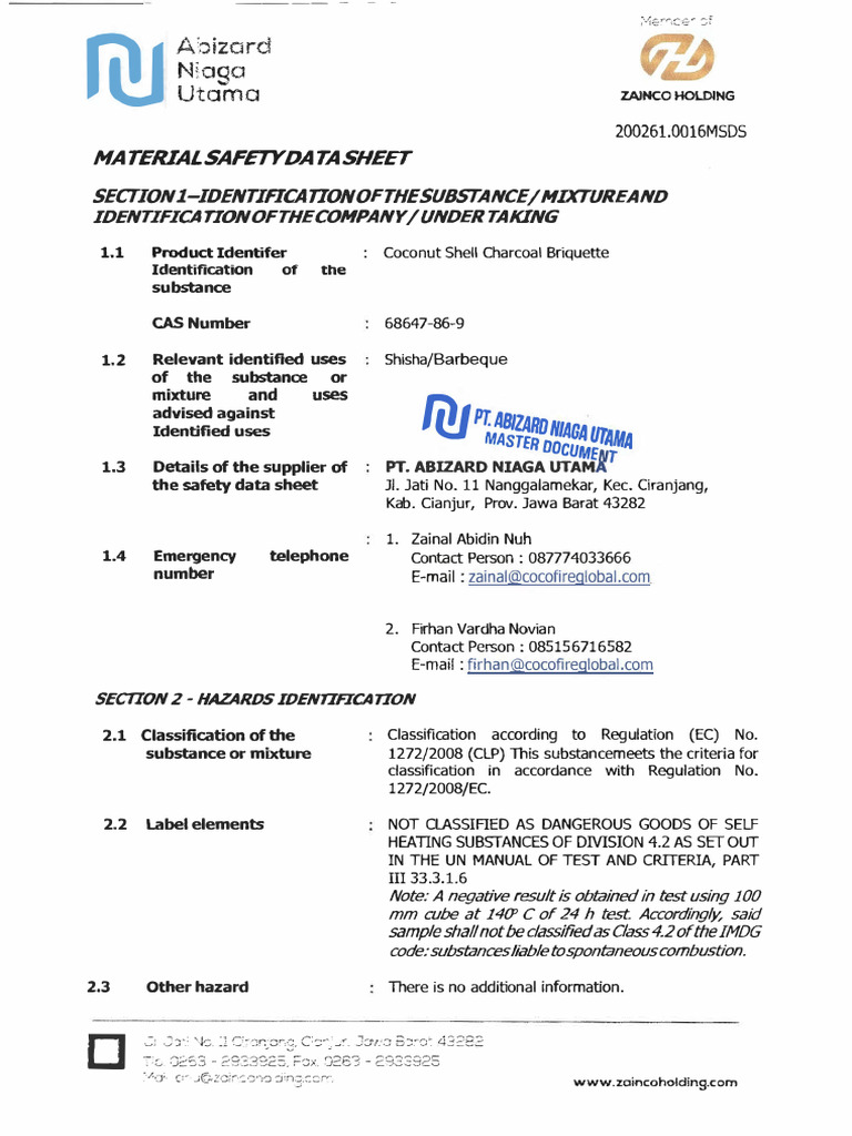 Material Safety Data Sheet PDF Kesehatan Holistik Teknologi