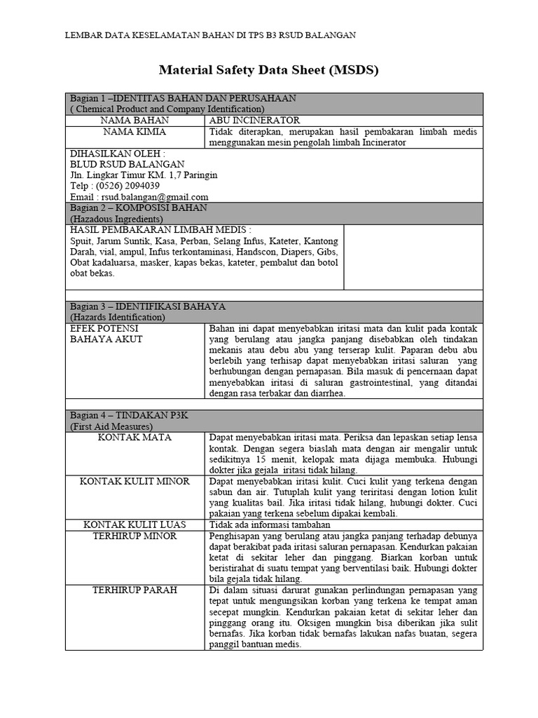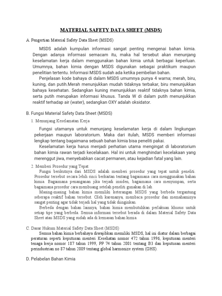 Material Safety Data Sheet (MSDS): Informasi Penting Penggunaan Bahan