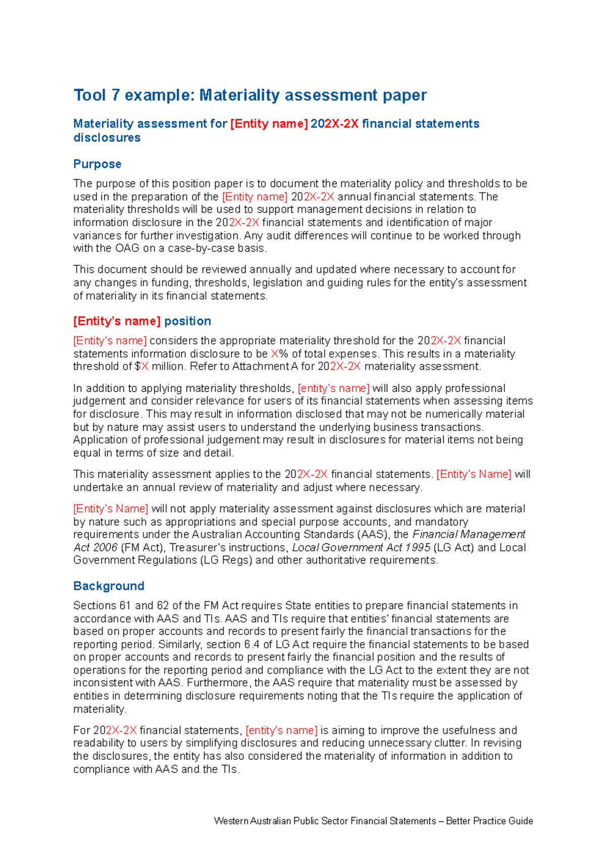 Tool 7 Template Materiality assessment paper Tool 7 example