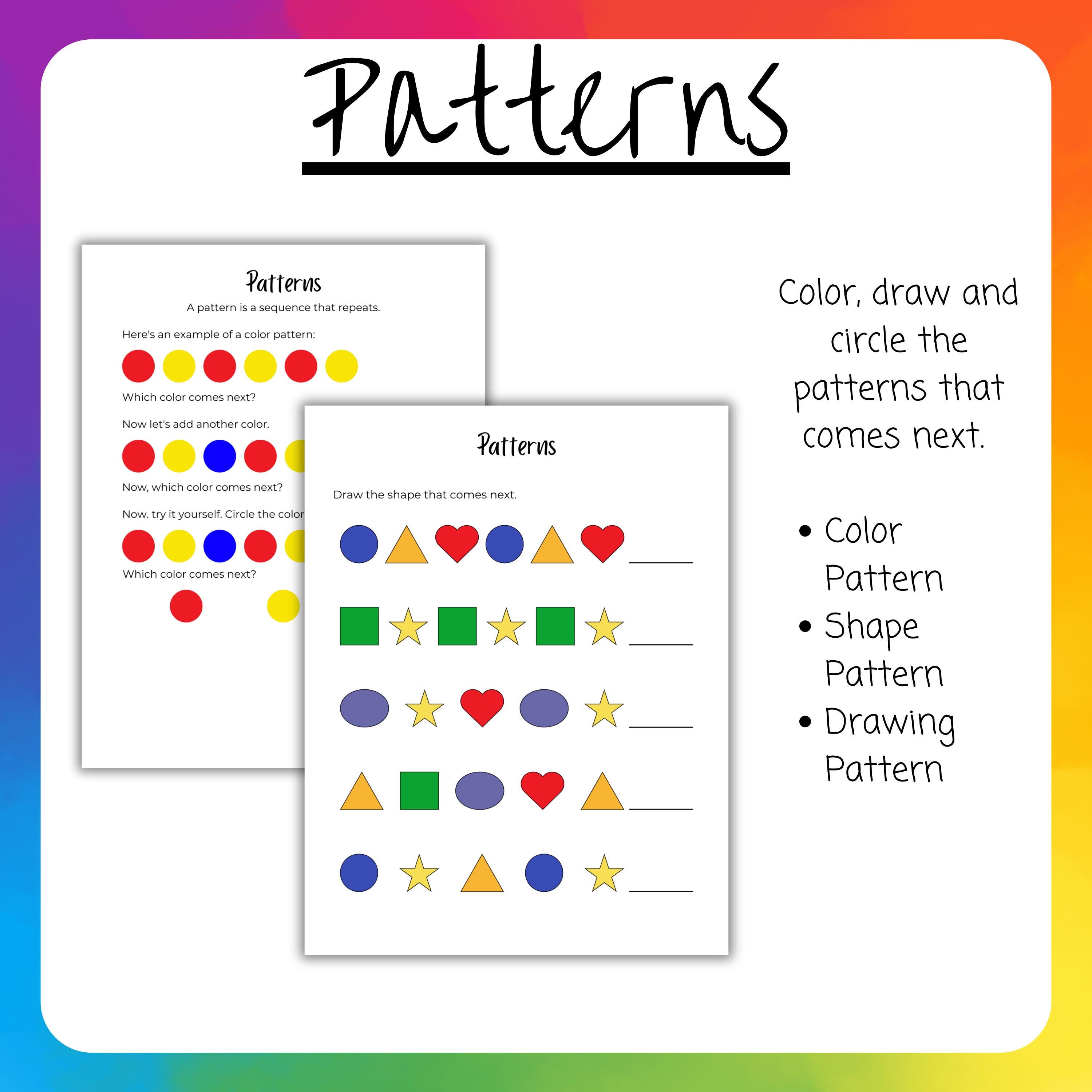 Complete The Patterns Worksheet for Kindergarten 1st Grade Lesson