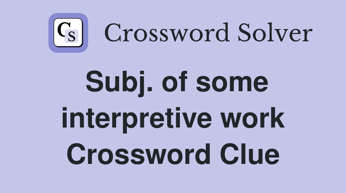 Subj of some interpretive work Crossword Clue Answers Crossword Solver