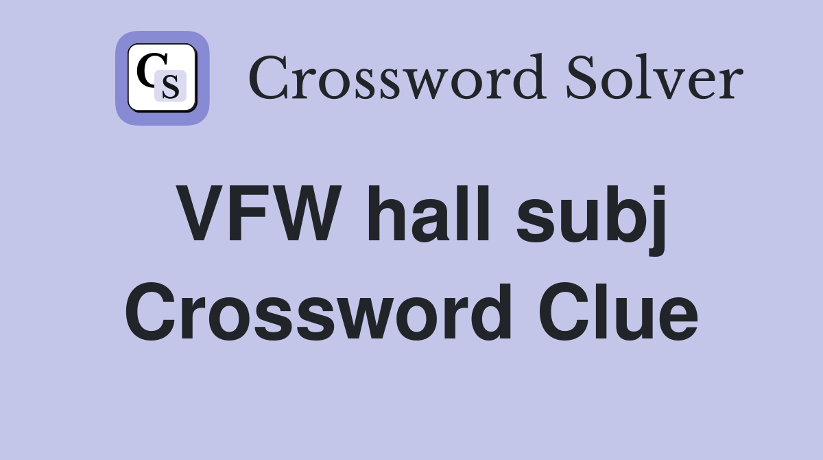 VFW hall subj Crossword Clue Answers Crossword Solver