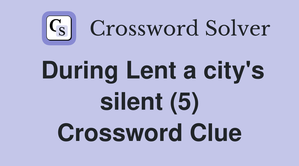 During Lent a city #39 s silent (5) Crossword Clue Answers Crossword Solver