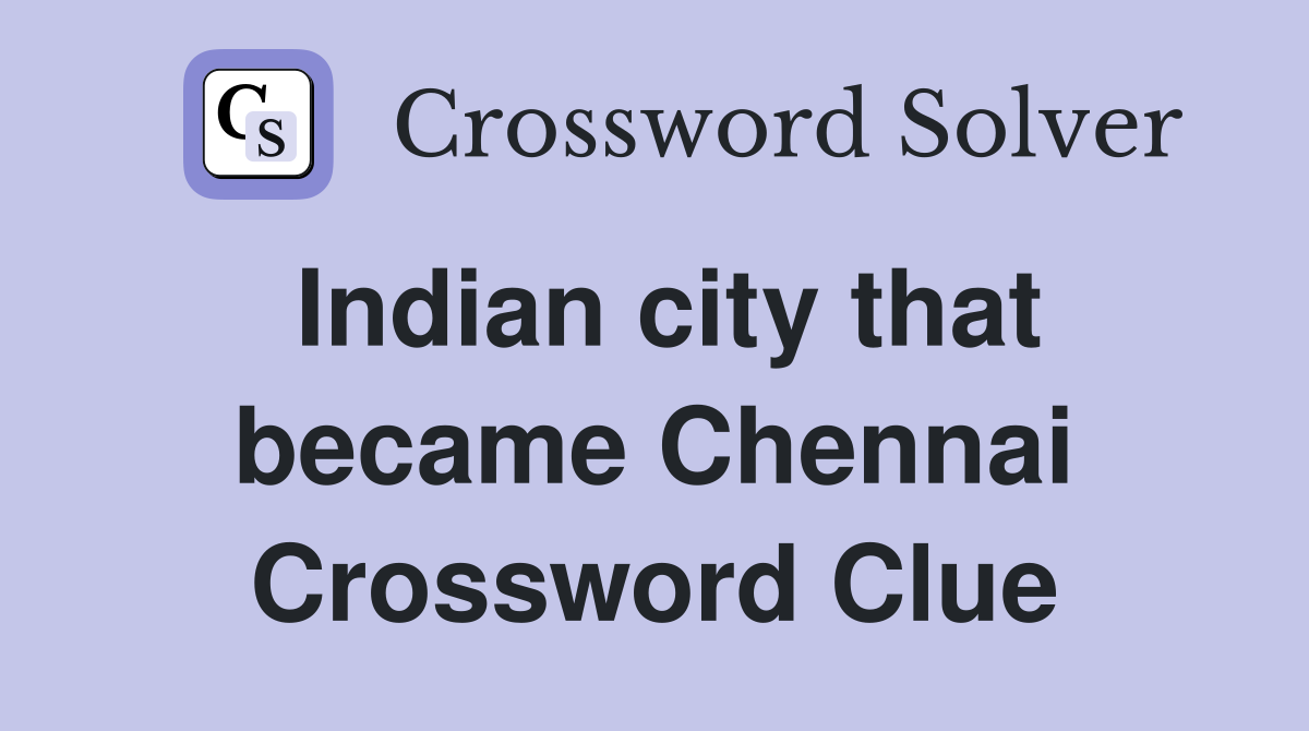 Indian city that became Chennai Crossword Clue Answers Crossword Solver