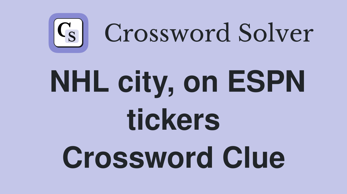 NHL city on ESPN tickers Crossword Clue Answers Crossword Solver