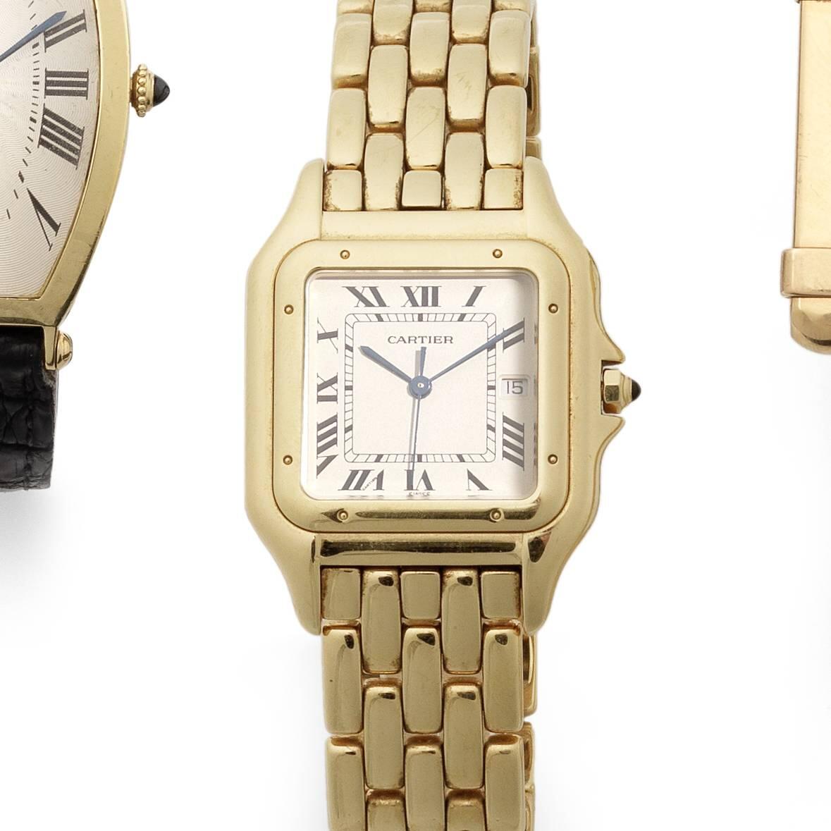 Bonhams : Cartier An 18ct gold quartz calendar bracelet watch Panthere