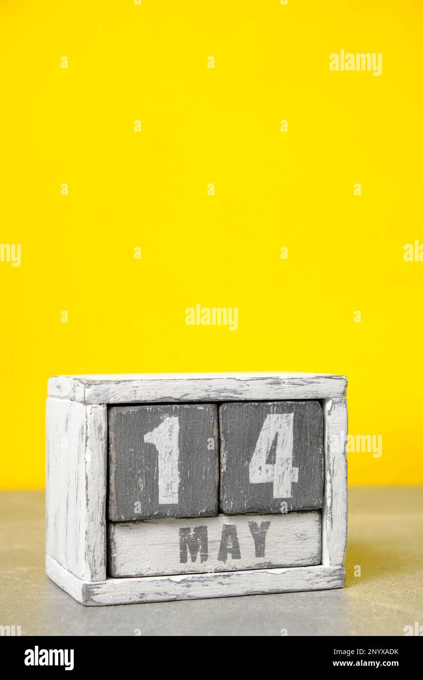 May 14 calendar made wooden cubes yellow background With an empty space