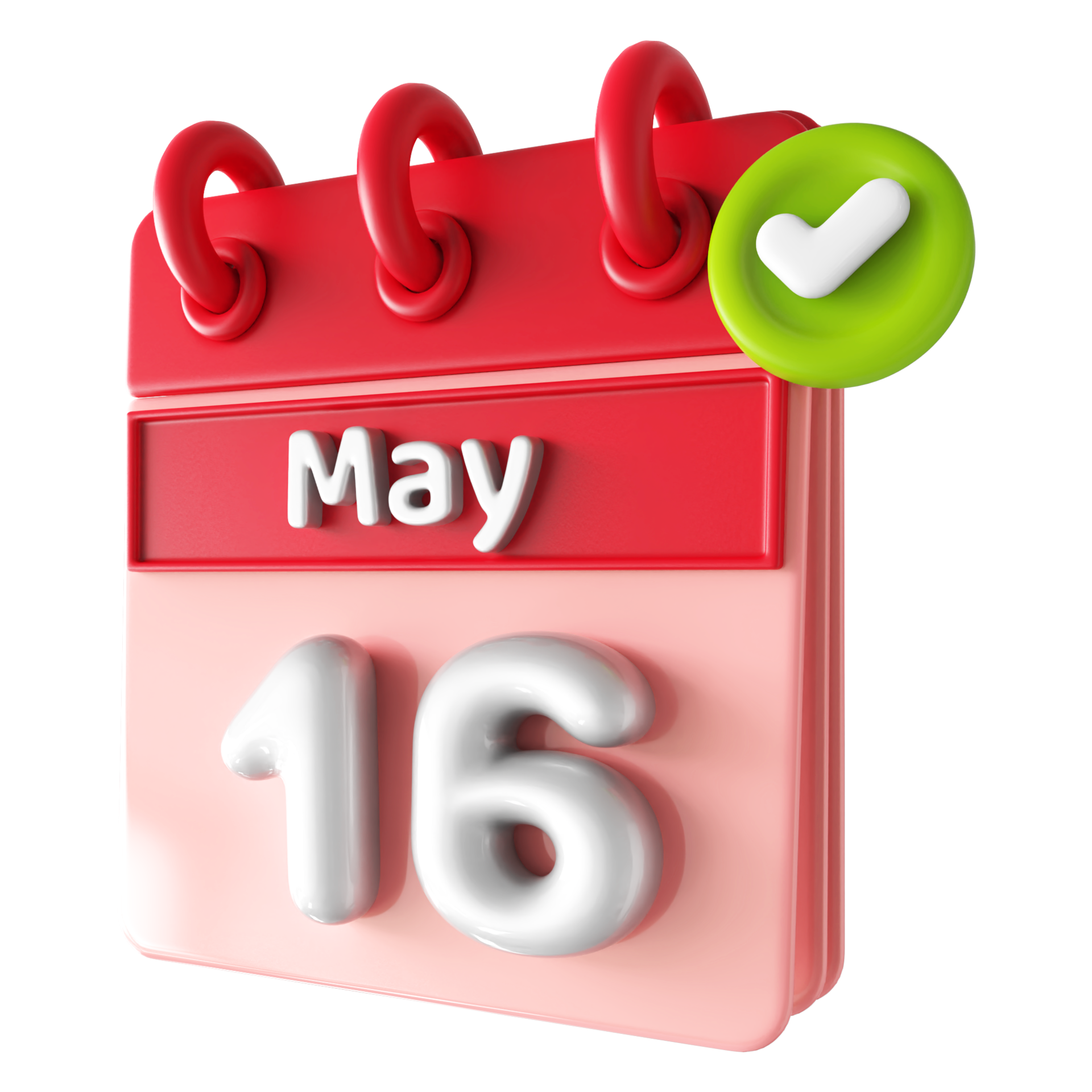 May 16th Calendar 3D With Check Mark Icon 34339348 PNG